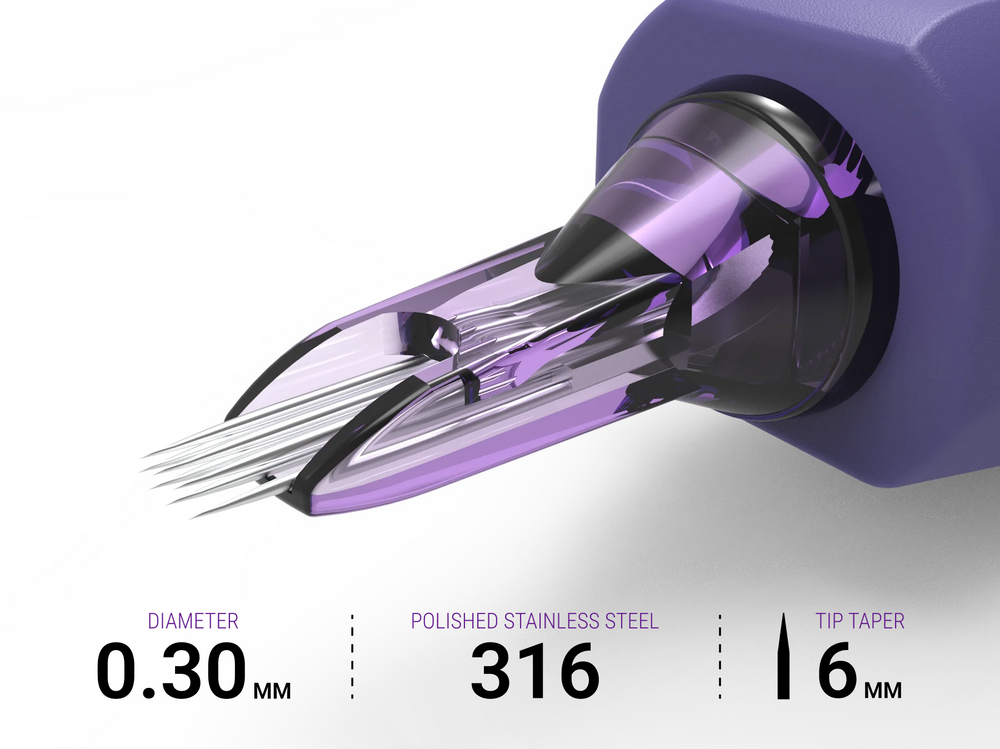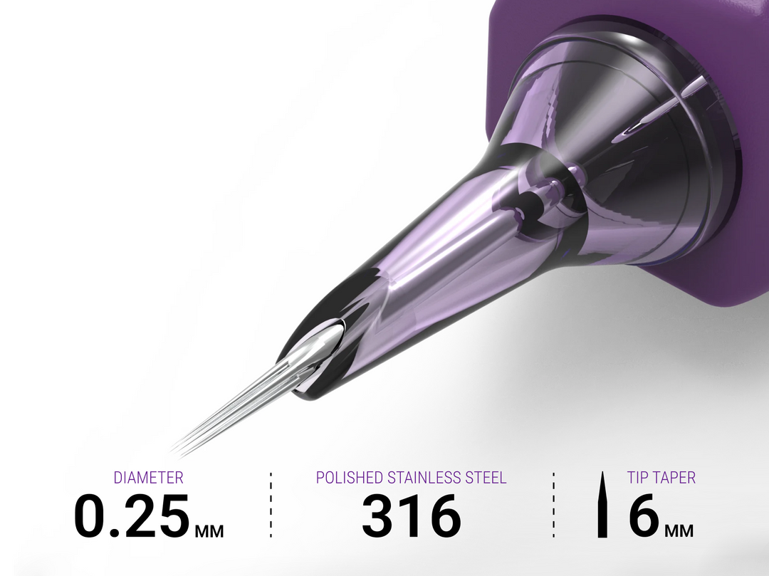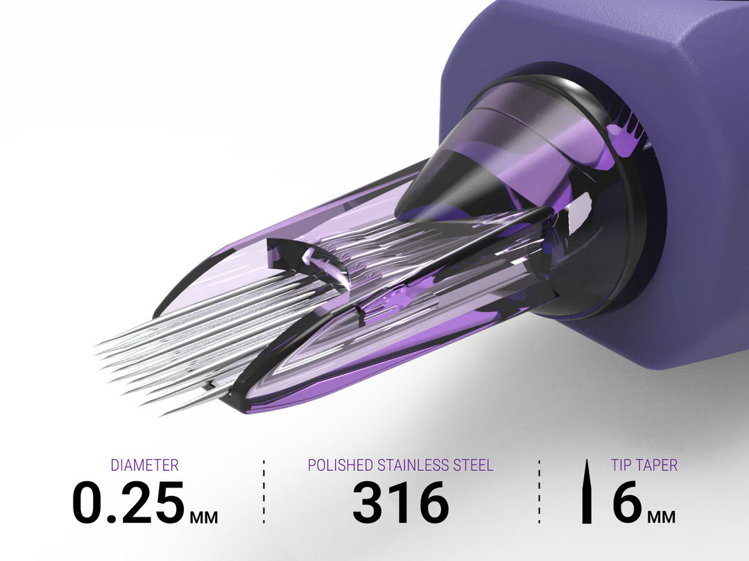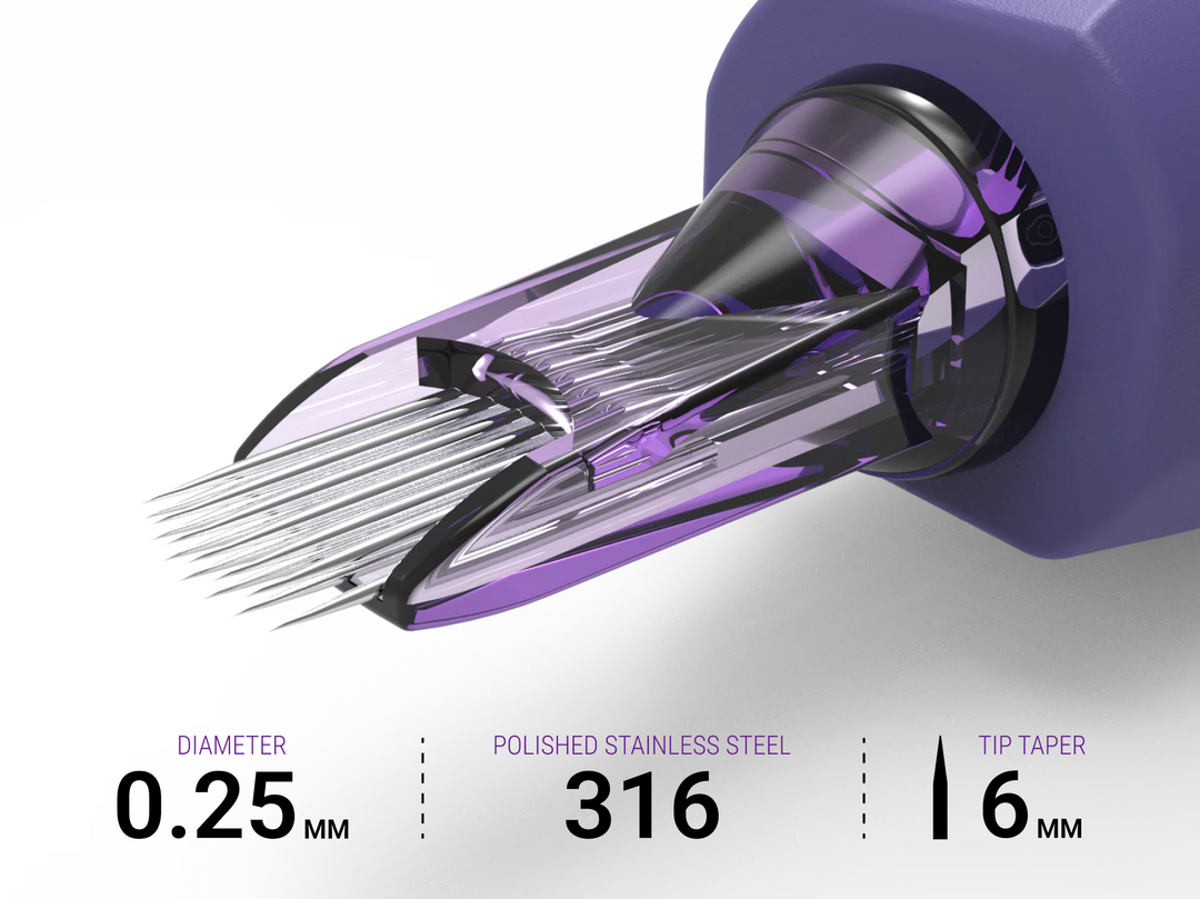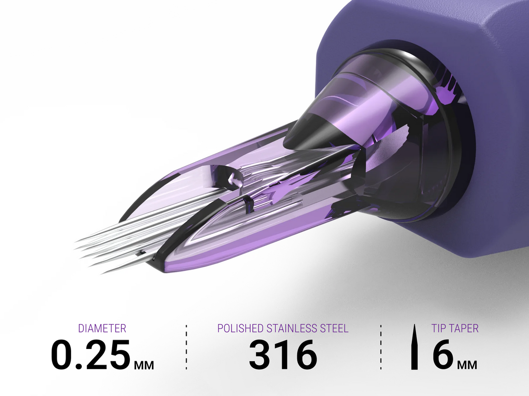 Hybrid needles differ from standard needles by combining features of traditional configurations — like round liners and flats — in a single cartridge. This design gives artists the benefits of both needle types, providing more control over shading, texturing, and fine detail work compared to standard single-function needles.